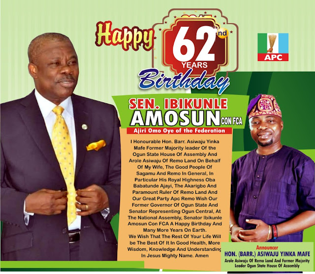 I convey my warm felicitations to you and pray that God grants you many more years of commendable service to the people of Ogun State and Nigeria at large.