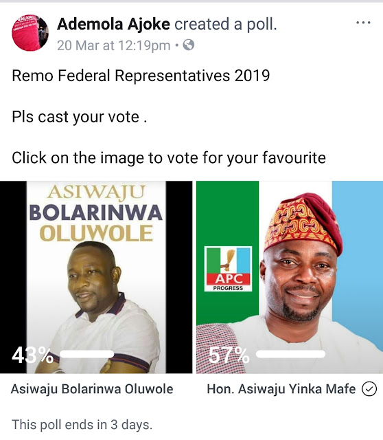 For the avoidance of doubt, in the referenced online Poll, Asiwaju Yinka Mafe lead is still clear over the competitor, even as Asiwaju Mafe was never privy to the setting up of the online poll contrary to insinuations from the warped imaginations of the writer in that pedestrian, banal and wishy-washy newspersecond247 publication. The lead of Hon. (Barr) Asiwaju Yinka Mafe over Asiwaju Bolarinwa Oluwole in the ongoing online poll is verifiable, the voters’ list is open and can be ascertained by ANY Facebook user.
